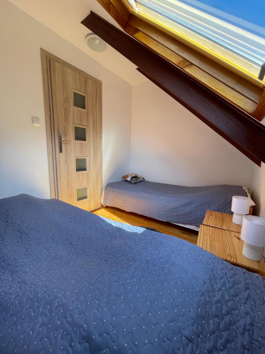 Dom z 2 sypialniami. Guests will find a refrigerator, kitchenware, a microwave and a toaster in the fully equipped kitchen. The holiday home also comes with a barbecue. Boasting a terrace with garden views, this holiday home also features a private entrance and a flat-screen TV. The unit has 5 beds. Dom wakacyjny - 6 osobowy. Powierzchnia pokoju ok.: 35 mkw.