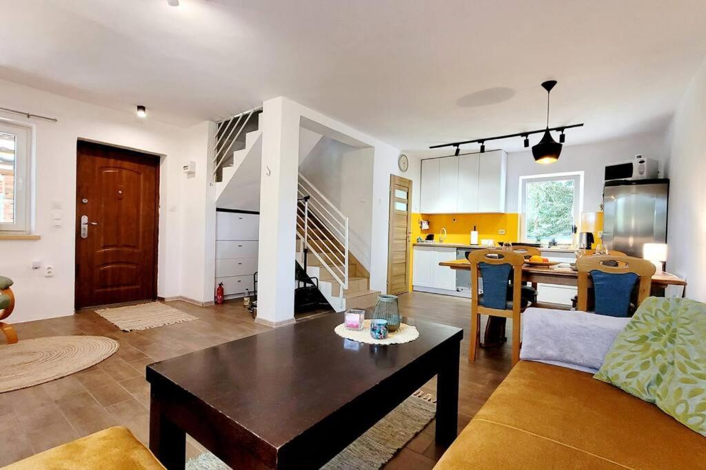 Dom z 3 sypialniami. Guests will have a special experience as this holiday home provides a fireplace. Guests will find a stovetop, a refrigerator, a dishwasher and kitchenware in the kitchen. The holiday home also has a barbecue. Featuring a terrace with garden views, this holiday home also offers a washing machine and a flat-screen TV. The unit offers 4 beds. Dom wakacyjny - 8 osobowy. Powierzchnia pokoju ok.: 72 mkw.